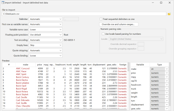 Combine, reshape datasets, manage variables, compute statistics across groups. Handle numeric/string data up to 2 billion characters. Cut/paste from spreadsheets. Advanced tools for survival, time-series, panel, categorical, multilevel, imputation, discrete choice, and survey data.